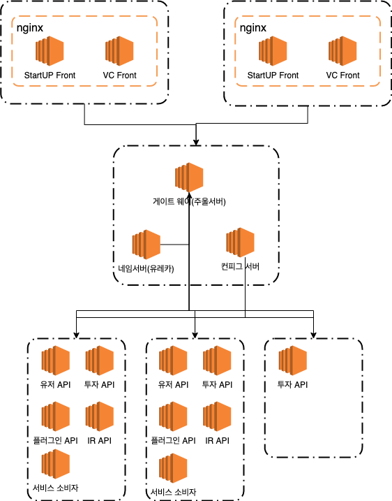이 글을 쓰는 시점에서 현재 개발 아키텍처는 마이크로서비스로 구현되고 있는 중입니다.